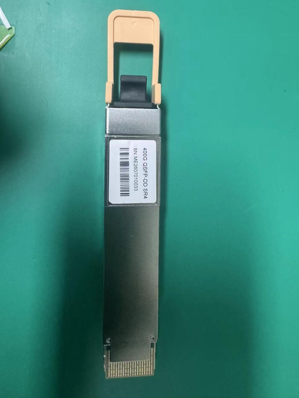 400GBASE-SR4 optical transceiver featuring an MTP/MPO-12 connector, supporting transmission distances up to 100 meters over parallel OM4 multimode fiber (MMF). Compliant with the QSFP-DD MSA, CMIS 5.2 interface, and 400GAUI-4 standards. Equipped with built-in Digital Diagnostic Monitoring (DDM) for real-time acquisition of operating parameters. Designed for 400G Ethernet and InfiniBand applications.